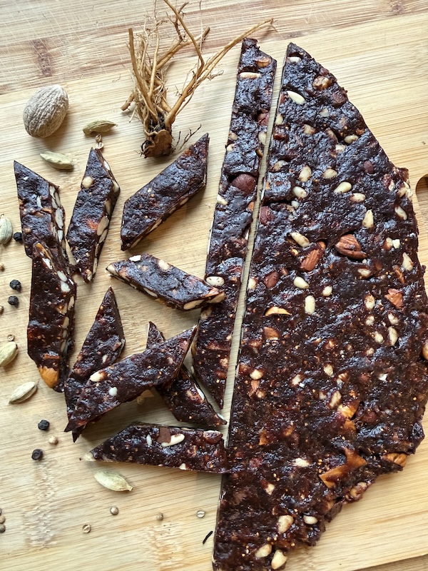 Wir haben unseren Panforte mit aromatischen heimischen, wilden Wurzeln angereichert, was ihm unserer Ansicht nach gut bekommen ist. Besonders gut passen Nelkenwurz, Engelwurz, etwas Löwenzahnwurzel und Meisterwurz (letztere allerdings sparsam dosiert!).