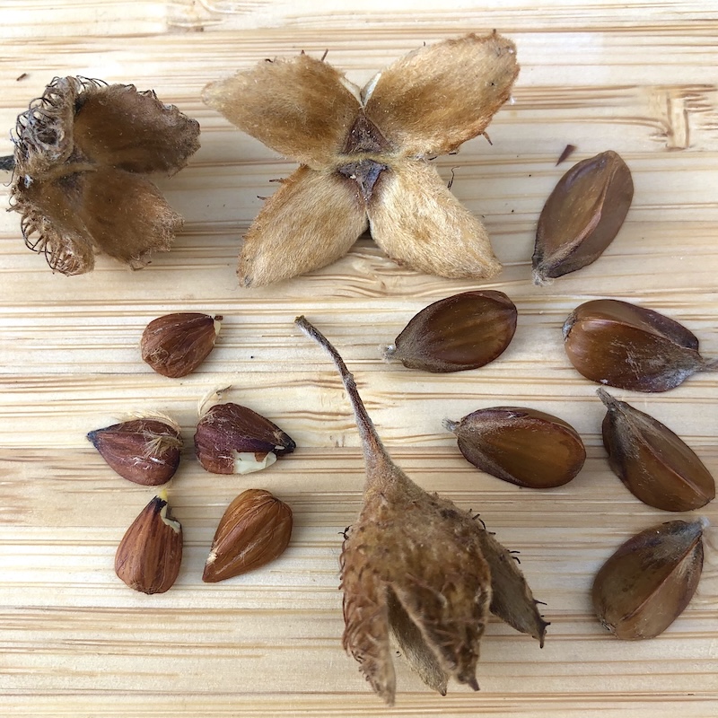 Frucht: einsamige Nussfrüchte reifen in hängenden Fruchtständen, jede Frucht ist von einem dreilappigem Flügel umgeben